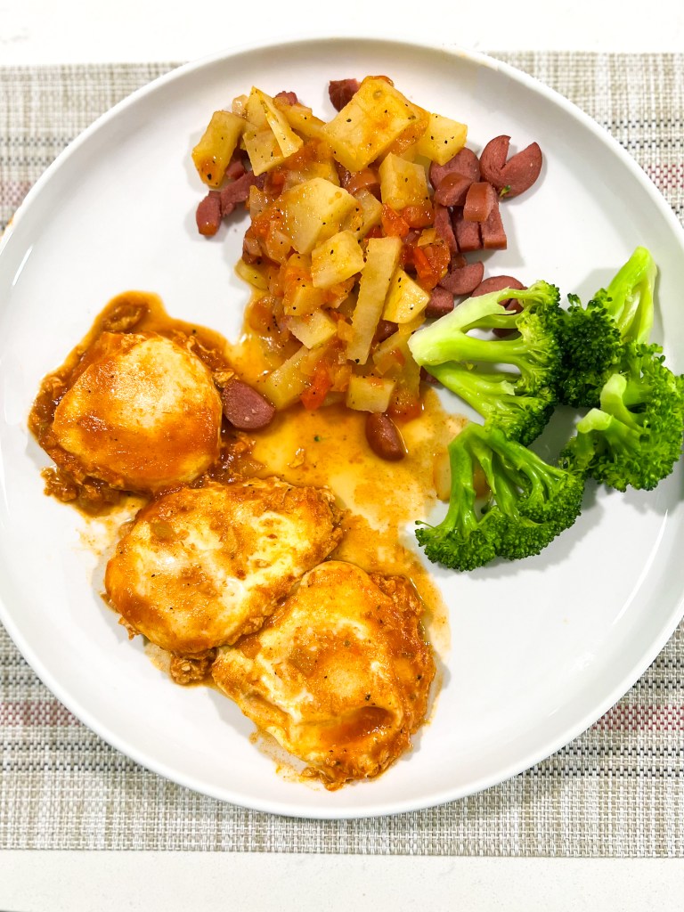 - Dinner: Baked sweet potato, grilled salmon, and steamed vegetables.